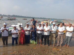 टीम लीडर कैलाश कुमार दत्ता, आचार्य कौशल किशोर मिश्र,आर पी दुबे पत्रकार, प्रदीप कुमार शुक्ला अधिवक्ता,अजय द्विवेदी अधिवक्ता,प्रभात श्रीवास्तव अधिवक्ता,मृणाली मिश्रा, राकेश मिश्रा, विकास केलकर, अन्नू निषाद, राजेंद्र जायसवाल, अरूण निषाद, सविता सिंह, भीम सिंह,मेज़र सुनील निषाद आदि के साथ क्षेत्रीय लोगों ने भी गंगाभिषेक किया।