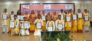 दीक्षांत समारोह में कुलाधिपति श्रीमती आनंदीबेन पटेल ने स्नातकोत्तर वर्ग में विश्वविद्यालय स्वर्ण पदक विद्याशाखाओं के 07 टापर्स को प्रदान किए।