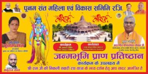 पूनम संत महिला एवं विकास समिति के तत्वाधान में निकलेगी भव्य श्री राम जी की निकली सवारी रथ यात्रा