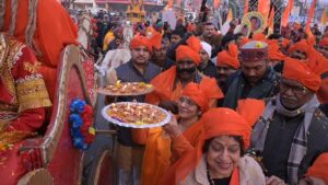 श्री राम जन्मभूमि तीर्थ क्षेत्र न्यास के सदस्य व विश्व हिंदू परिषद के राष्ट्रीय उपाध्यक्ष कामेश्वर चौपाल ने पूनम संत महिला एवं विकास समिति के तत्वावधान में निकली राम जी की सवारी यात्रा का शुभारंभ धरना स्थल से रथ पर विराजमान पूज्य महर्षि वाल्मीकि , मर्यादा पुरुषोत्तम श्री राम , माता सीता , भैया लक्ष्मण , राम भक्त हनुमान एवं भगवान राम जी के बाल सखा निषाद राज गुह की आरती उतार कर किया।