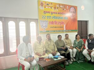 एटा। अग्रिम जैन एडवोकेट प्रमुख मीडिया प्रबंधन एटा लोकसभा की जानकारी दी कि रविवार को सुरेशपुरी जी.टी. रोड स्थित भारतीय जनता पार्टी 22 एटा लोकसभा क्षेत्र के मुख्य चुनाव कार्यालय पर एटा लोकसभा की चुनाव प्रबंधन समिति की लोकसभा चुनाव के संबंध में महत्वपूर्ण बैठक आयोजित की गई। बैठक की अध्यक्षता एटा जनपद के जिला अध्यक्ष संदीप जैन एडवोकेट ने की। बैठक को संबोधित करते हुए मुख्य अतिथि 22 एटा लोकसभा के प्रभारी नागेंद्र दुबे गामा ने चुनाव को लेकर चुनाव प्रबंधन समिति के पदाधिकारी के कार्यों की समीक्षा एवं समिति को दिशा निर्देश दिए। नागेंद्र दुबे गामा जी ने बताया कि 19 मार्च एवं 20 मार्च को मंडल स्तर पर कार्यशाला आयोजित होगी।