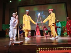 कक्षा तीन के नन्हे मुन्ने बच्चों ने पुराने खेलों पर आधारित नाट्यात्मक -नृत्य प्रस्तुत कर दर्शकों का मन मोह लिया । कक्षा चार के बच्चों ने टटिंग नृत्य के माध्यम से संगीत ध्वनि पर हिंदी वर्णमाला और अनेक गतिविधियों का हस्त- पाद संचालन करके सामूहिक नृत्य प्रस्तुत किया। कक्षा 5 के बच्चों ने मुंशी प्रेमचंद कृत ईदगाह, रवींद्रनाथ टैगोर कृत काबुलीवाला एवं मालगुडी डेज़ नाटक हिंदी और अंग्रेजी दोनों भाषा में अनोखे अंदाज में प्रस्तुत किया। कक्षा 6 के बच्चों ने अटल साधक बालक ध्रुव की तपस्या और साधना कथा पर आधारित नाटक प्रस्तुत करते हुए अनवरत परिश्रम और दृढ़ आत्मविश्वास का संदेश दिया। वार्षिकोत्सव में पधारे मुख्य अतिथि मनु प्रकाश दूबे जी ने बच्चों को संबोधित करते हुए विद्यालय के बच्चों द्वारा प्रस्तुत सभी कार्यक्रमों की मुक्त कंठ से प्रशंसा की और कहा कि जिन गुरुओं से शिक्षा प्राप्त की है ,हम सदैव उन्हें याद रखें। उनका सम्मान करें ,विद्यालय वह मंदिर है, जो जीवन की उपलब्धियों का आधार होता है।उन्होंने बच्चों की प्रतिभा की सराहना की और अंकुरित बीज के संघर्ष की कहानी सुनाकर जीवन में सदैव चुनौतियों का सामना करने की सीख दी।पतंजलि विद्यालय समूह के कोषाध्यक्ष रवींद्र गुप्ता जी ने बच्चों द्वारा प्रस्तुत कार्यक्रम और उनकी असीम ऊर्जा की प्रशंसा करते हुए मुख्य अतिथि का हार्दिक अभिनन्दन किया।विद्यालय की प्राइमरी को-ऑर्डिनेटर वैशाखी घोष ने कार्यक्रम में उपस्थित मुख्य अतिथि एवं विद्यालय के गणमान्य सदस्यों सहित अभिभावकों को हृदय से आभार प्रकट किया।पतंजलि विद्यालय समूह की सचिव डॉ कृष्णा गुप्ता जी ने मुख्य अतिथि द्वारा अपना अमूल्य समय देकर विद्यालय में आगमन हेतु हार्दिक आभार प्रकट किया और कक्षा 1 से 12 तक के बच्चों द्वारा प्रस्तुत सांस्कृतिक कार्यक्रम और मनमोहक साज़ -सज्जा की खूब सराहना की। वार्षिकोत्सव समारोह का संचालन कक्षा 6 के उन्नति यादव, आराध्यमन प्रियांशी और कक्षा 9 बी के आयुष्मान तथा 11डी के आत्मिक ने उत्तम एवं शालीन भाषा शैली में दर्शकों को बांधे रखा।महर्षि पतंजलि विद्या मंदिर के कक्षा 7 से 12 तक के पर्याविजन वार्षिकोत्सव के मुख्य अतिथि राजीव भारती (रजिस्टार जनरल, इलाहाबाद उच्च न्यायालय, प्रयागराज एवं विशिष्ट अतिथि सौरभ श्रीवास्तव डिपार्टमेंट चीफ सिग्नल एवं दूरसंचार इंजीनियर, उत्तर मध्य रेलवे)का विद्यालय प्रधानाचार्या अल्पना डे ने स्वागत किया। पर्याविजन विषय पर आधारित वार्षिकोत्सव में बच्चों द्वारा अनेक रंगारंग विभिन्न सांस्कृतिक कार्यक्रम प्रस्तुत किए गए। सर्वप्रथम “भूमि मंगलम्” गीत के माध्यम से पृथ्वी माता की वंदना की गई। कक्षा 7 के बच्चों ने मूक अभिनय और सामूहिक 