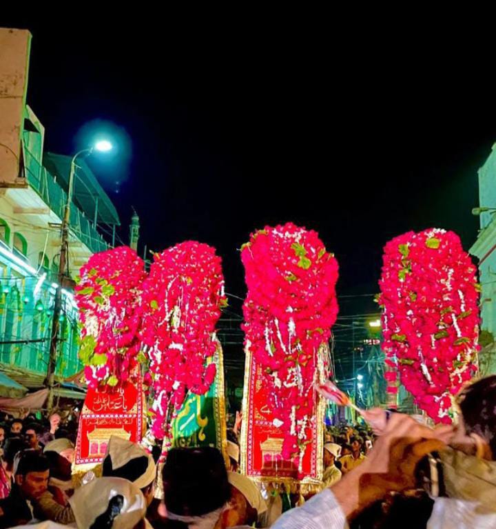 इस अवसर पर अकीदतमंदों की बड़ी संख्या में मौजूदगी देखी गई, जिन्होंने पूरी अकीदत के साथ आलम का दीदार किया और फूल को पेश किया।