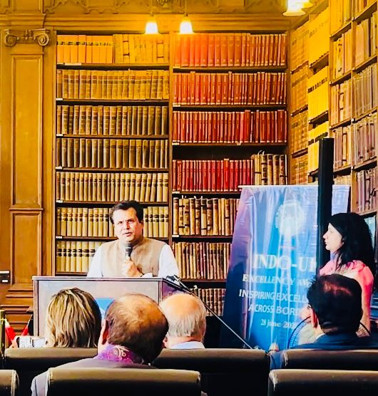 मानव जीवन को अमरत्व की ओर ले जाना है और शाश्वत सत्य के सनातन धर्म के द्वारा ही वैश्विक शांति का मार्ग प्रशस्त किया जा सकता है…उन्होंने 28 जून को यह संदेश उस ऐतिहासिक मंच से दिया, जहाँ कभी विंस्टन चर्चिल, मार्गरेट थैचर, रोनाल्ड रीगन, डॉ. शशि थरूर, ममता बनर्जी, जावेद अख़्तर और अनुपम खेर जैसे महान व्यक्तित्व अपने विचार रख चुके हैं। अब पहली बार, प्रयागराज की आवाज़ उस वैश्विक मंच पर गूंजी। उनके शब्दों में “वसुधैव कुटुंबकम” की वह गूंज थी, जिसे पूरी दुनिया ने सुना।