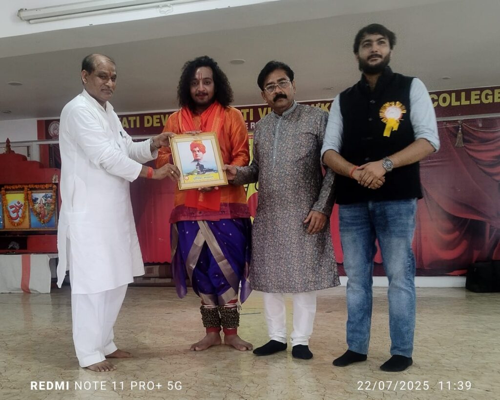 प्रयागराज.विद्या भारती से संबद्ध काशी प्रांत के रानी रेवती देवी सरस्वती विद्या निकेतन इंटर कॉलेज राजापुर, प्रयागराज में प्रधानाचार्य बांके बिहारी पाण्डेय की अध्यक्षता में स्पिक मैके द्वारा प्रसिद्ध कथक कलाकार पंडित रुद्रशंकर मिश्र ने विद्यालय के सभागार में छात्र-छात्राओं के समक्ष कथक नृत्य के द्वारा रामायण के विभिन्न प्रसंगों पर आधारित गीतों के माध्यम से भावपूर्ण प्रस्तुति देते हुए छात्र-छात्राओं को भी नृत्य के प्रारंभिक गुणों की जानकारियां प्रदान की l पंडित रूद्र शंकर मिश्र ने छात्र-छात्राओं से संवाद भी स्थापित किया,उनकी प्रस्तुति पर छात्र-छात्राएं बीच-बीच में बराबर तालियों से उनका उत्साहवर्धन करते रहे l