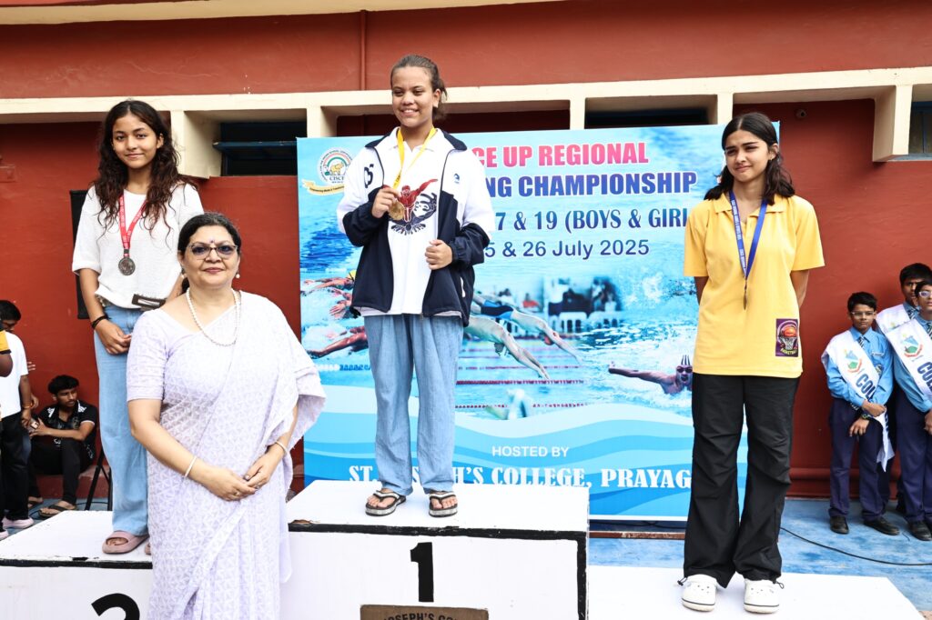सी ० आई० एस ०सी० ई० क्षेत्रीय तैराकी प्रतियोगिता का तीसरा दिन आज दिनांक 26-7-2025 को संत जोसेफ कॉलेज मे सी ० आई० एस ०सी० ई० उत्तर प्रदेष के तीन दिवसीय तैराकी प्रतियोगिता के अंतिम चरण में समापन समारोह आयोजित हुआ।