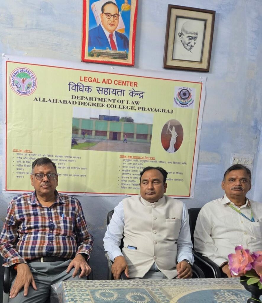 इलाहाबाद डिग्री कॉलेज के विधि विभाग बेनीगंज परिसर में आज शुक्रवार 1 अगस्त 2025 को अपराहन 2:00 बजे विधिक सेवा उपचार केंद्र का शुभारंभ ज़िला विधिक सेवा प्राधिकरण के सचिव एवं अपर ज़िला जज श्री दिनेश कुमार गौतम के हाथों हुआ।