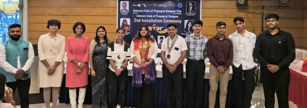 प्रयागराज Rotaract Club of Prayagraj Sangam City (RID 3120) एवं Interact Club of Prayagraj Sangam का द्वितीय अधिष्ठापन समारोह “आरंभ” दिनांक 5 अगस्त 2025 को अत्यंत उत्साह एवं गरिमा के साथ आयोजित किया गया। यह समारोह युवाओं की ऊर्जा, नेतृत्व क्षमता एवं सामाजिक उत्तरदायित्व की प्रेरणादायक प्रस्तुति बना।