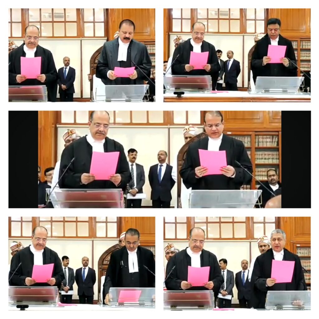 मुख्य न्यायाधीश अरुण भंसाली अपने न्याय कक्ष में सुबह 10 बजे आयोजित सादे समारोह में नवनियुक्त न्यायाधीशों को दिलाई शपथ ।