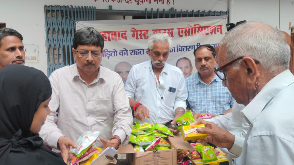 इलाहाबाद गेस्ट हाउस एसोसिएशन ने बाढ़ पीड़ितों को राहत सामग्री वितरित की