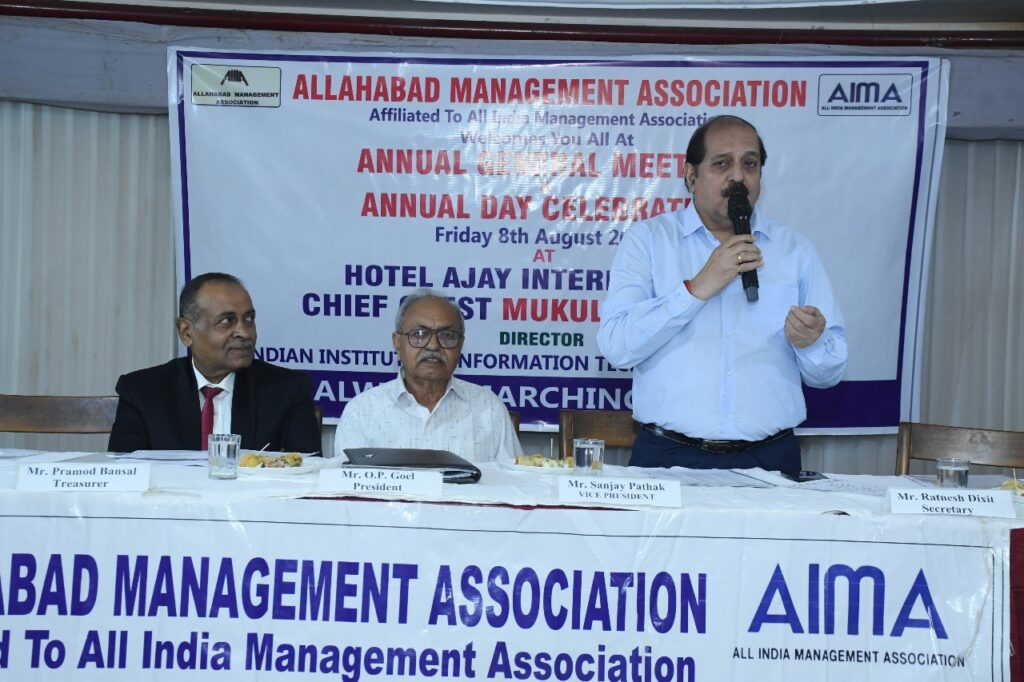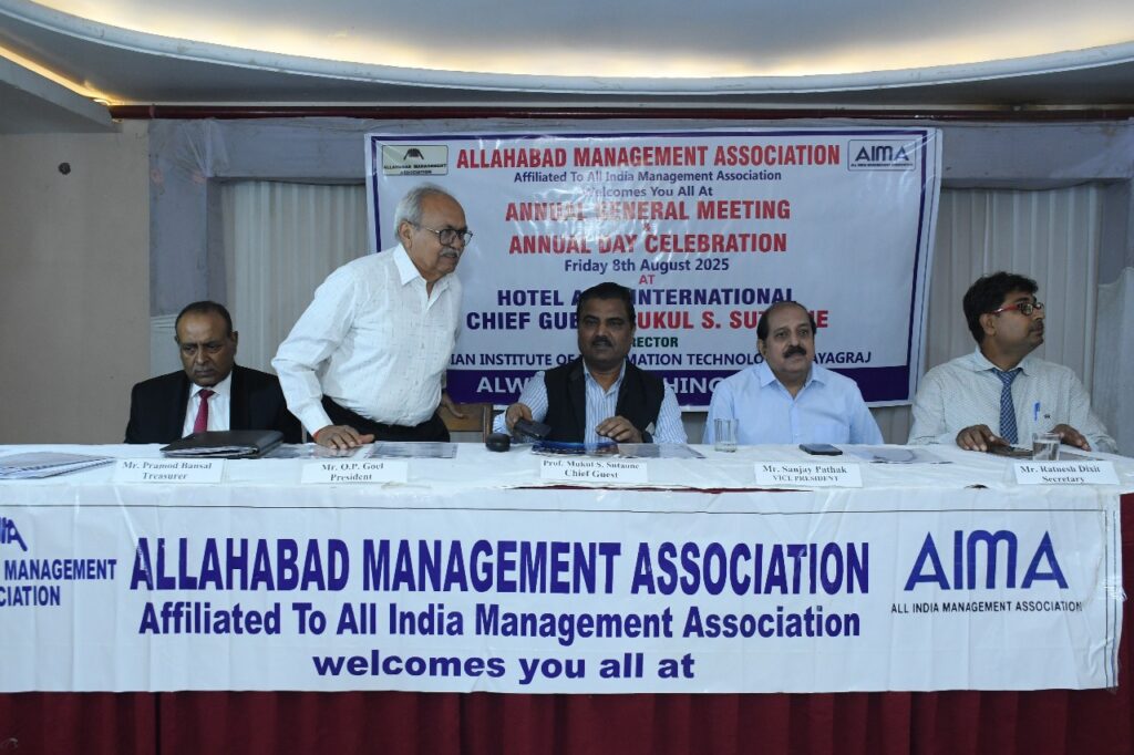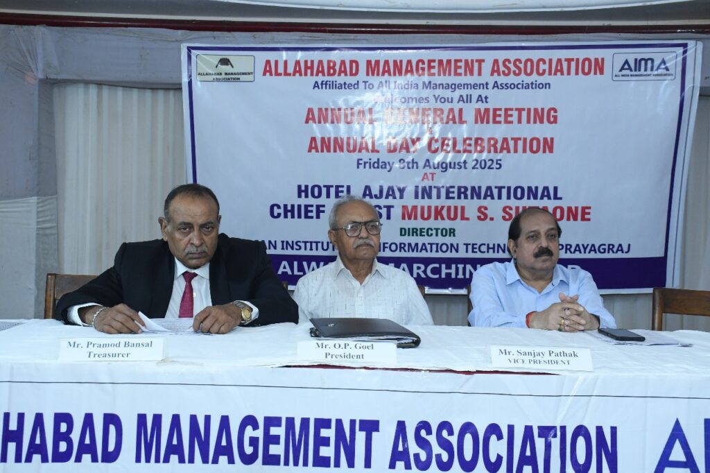 प्रयागराज। इलाहाबाद मैनेजमेंट एसोसिएशन (AMA) का वार्षिक आम बैठक एवं वार्षिक दिवस समारोह शुक्रवार, 8 अगस्त 2025 को होटल अजय इंटरनेशनल, सिविल लाइंस, प्रयागराज में भव्य रूप से सम्पन्न हुआ। कार्यक्रम की अध्यक्षता एएमए अध्यक्ष श्री ओ.पी. गोयल ने की।