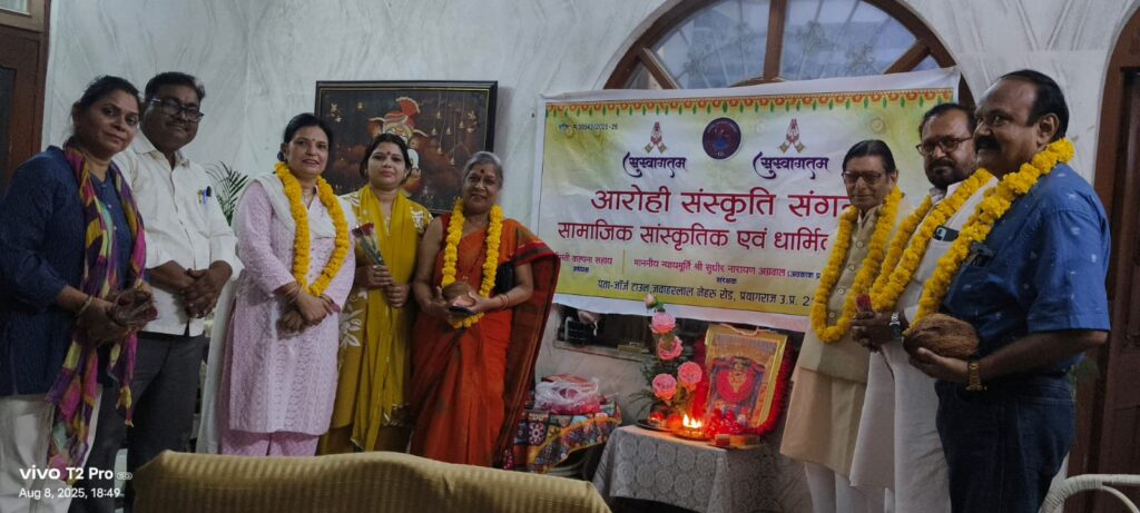 प्रयागराज नवगठित संस्था आरोही संस्कृति संगम की बैठक आज संरक्षक न्यायमूर्ति सुधीर नारायण जी की अध्यक्षता में उनके आवास पर सम्पन्न हुई। बैठक में तय किया गया कि इस वर्ष से साल में तीन कार्यक्रम किए जाएंगे। इन कार्यक्रमों में महिला दिवस, तुलसी जयंती और होली तथा सावन में पर्व गीत के कार्यक्रम होंगे।