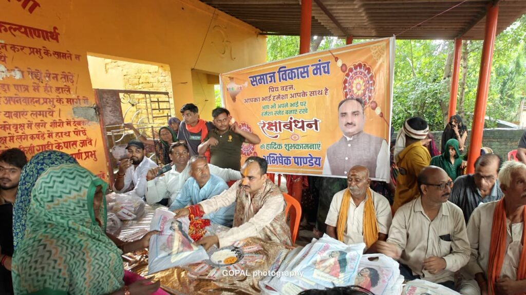 समाज विकास मंच के अध्यक्ष अभिषेक पाण्डेय के त्वतधान में डगडगपुर में हजारों बहनों ने राखी बांधी।