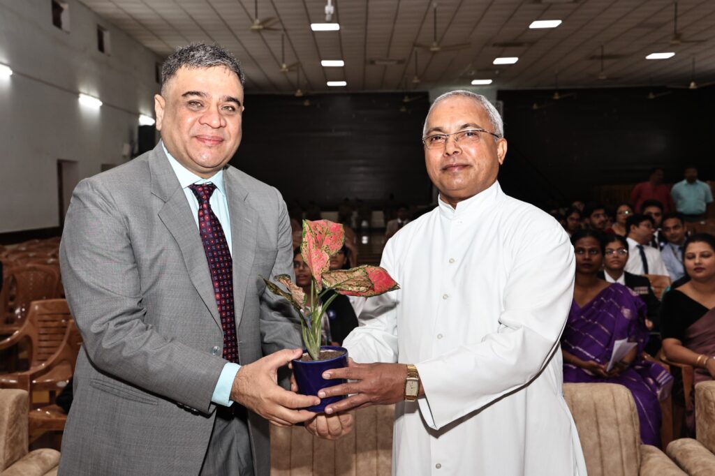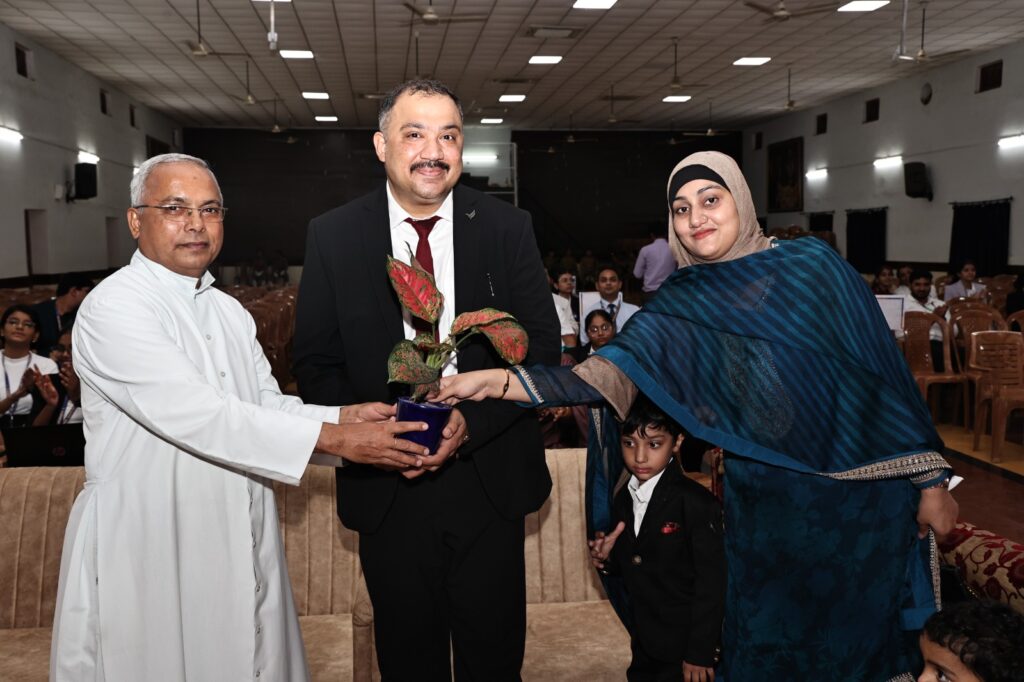 कार्यक्रम के समापन समारोह के मुख्य अतिथि माननीय वकील उमर जमीर का विद्यालय के प्रधानाचार्य रेव फादर वॉल्टर डी’सिल्वा ने नवपल्लव भेट कर के उनका स्वागत किया।