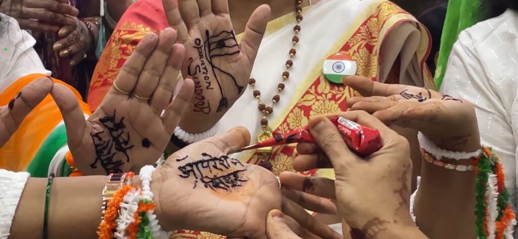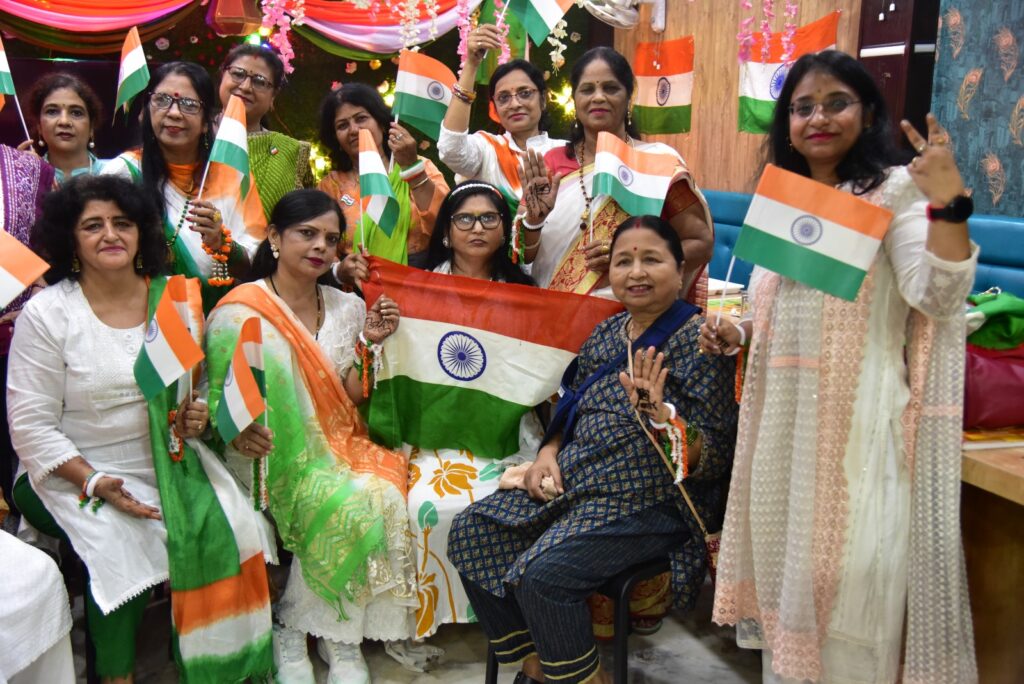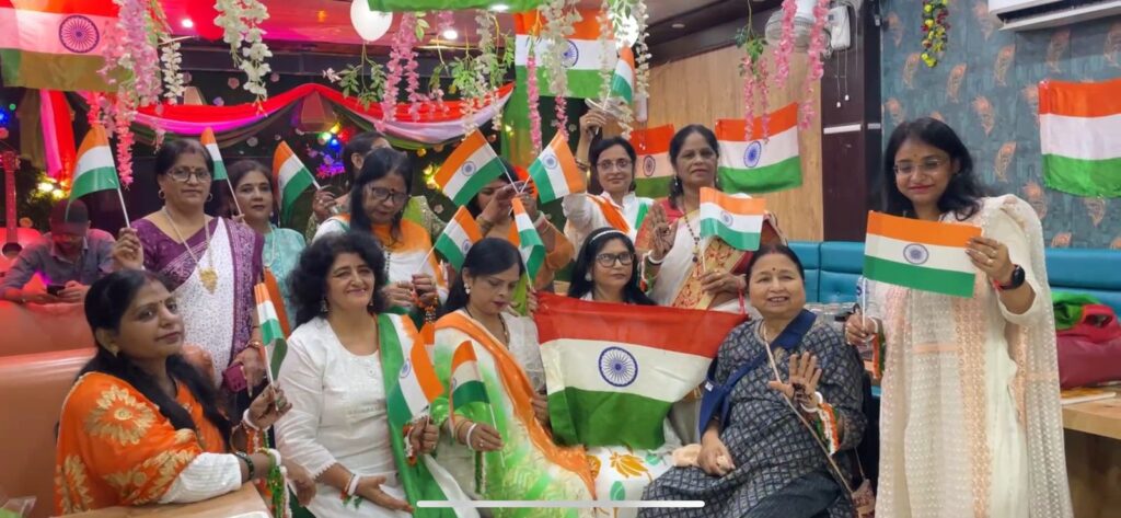 कनकधारा की महिलाओं ने हर घर तिरंगा अभियान को व्यापक रूप देते हुए हर मन तिरंगा और हाथ में हिंदुस्तान की तर्ज पर उत्सव के रूप में मनाया। इस अवसर पर महिलाओं ने तिरंगे के रंग के परिधान धारण किए, हाथों में तिरंगे की मेहंदी बनाकर और ऑपरेशन सिंदूर को याद करते हुए यह उत्सव सेलिब्रेट किया। इस कार्यक्रम का उद्देश्य देशभक्ति और राष्ट्रीयता की भावना को बढ़ावा देना था। कनकधारा की महिलाओं ने तिरंगे के प्रति अपने सम्मान और प्रेम को व्यक्त किया और देश की सुरक्षा और समृद्धि के लिए अपनी प्रतिबद्धता को दोहराया। कनकधारा की अध्यक्ष स्वाती निरखी ने कहा कि महिलाओं की भागीदारी भारत के शासन और समाज में बढ़ रही है, जिससे उनकी जिम्मेदारी भी बढ़ गई है। ललिता मलिक ने ऑपरेशन सिंदूर एयर स्ट्राइक करने वाली जांबाज बेटियों को सलाम किया और कहा कि हम सब महिलाओं की दिल से दुआ और आशीर्वाद है कि वह अपनी और देश की हर बेटी की सुरक्षा को तत्पर रहें। इस कार्यक्रम के माध्यम से कनकधारा की महिलाओं ने देशभक्ति और राष्ट्रीयता का संदेश दिया और देश की सुरक्षा और समृद्धि के लिए अपनी प्रतिबद्धता को दोहराया। कार्यक्रम में मंजू वर्मा, सीमा कुशवाहा, दीपमाला पांडे, साधना सिंह , रंजना गुलाटी, अमिता जायसवाल आदि उपस्थित रही ।