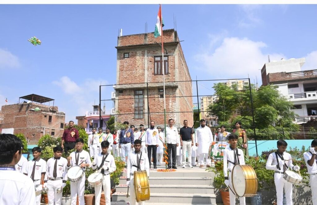कार्यक्रम का शुभारंभ विद्यालय के प्रबंधक श्री अब्दुल रफीक जी के करकमलों द्वारा ध्वजारोहण के साथ हुआ। राष्ट्रपिता महात्मा गांधी और भारत माता की प्रतिमा के समक्ष दीप प्रज्ज्वलन कर इस अवसर को और भी गरिमामय बनाया गया। विद्यालय के समस्त छात्र/छात्राओं ने तिरंगे को गर्व के साथ लहराते हुए, मातृभूमि के प्रति अपनी अटूट निष्ठा और समर्पण की भावना को सामूहिक राष्ट्रगान के स्वरों में अभिव्यक्त किया।
