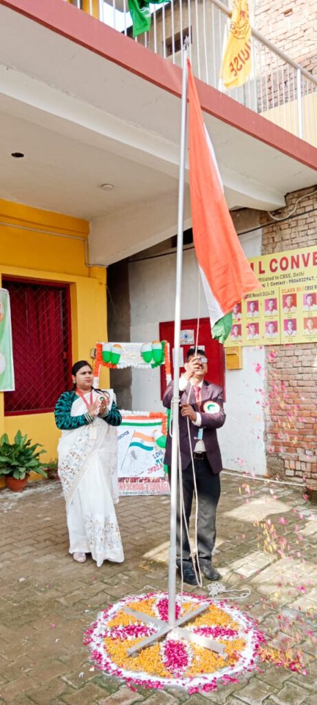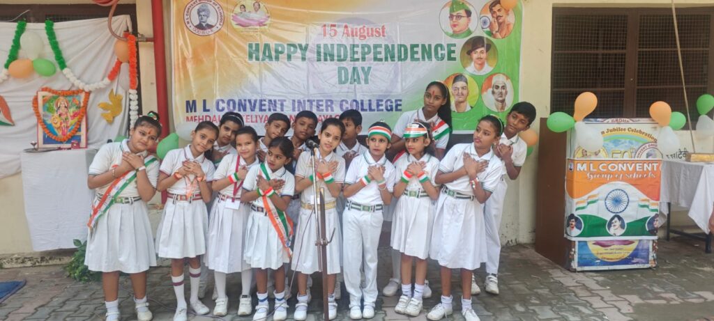 प्रयागराज एम. एल. कॉन्वेंट ग्रुप ऑफ स्कूल्स के सभी इकाइयों में 79वां स्वतंत्रता दिवस बड़े उत्साह और देशभक्ति की भावना के साथ मनाया गया। कार्यक्रम की शुरुआत दीप प्रज्वलन और मां सरस्वती तथा भारत माता की प्रतिमाओं पर माल्यार्पण से हुई। इसके बाद ध्वजारोहण और राष्ट्रगान हुआ। भारी उत्साह के साथ भारत स्काउट्स और गाइड्स द्वारा शपथ ग्रहण समारोह आयोजित किया गया, जिसमें विद्यार्थियों ने ईमानदारी और समर्पण के साथ राष्ट्र सेवा की प्रतिज्ञा ली। ध्वजारोहण प्राचार्यों द्वारा किया गया, जिसके साथ ही राष्ट्रगान की गूंज पूरे परिसर में फैल गई और हर दिल को गर्व से भर दिया।