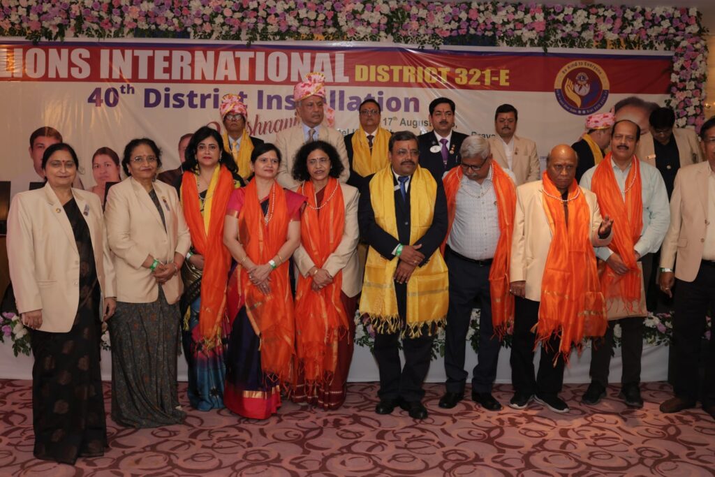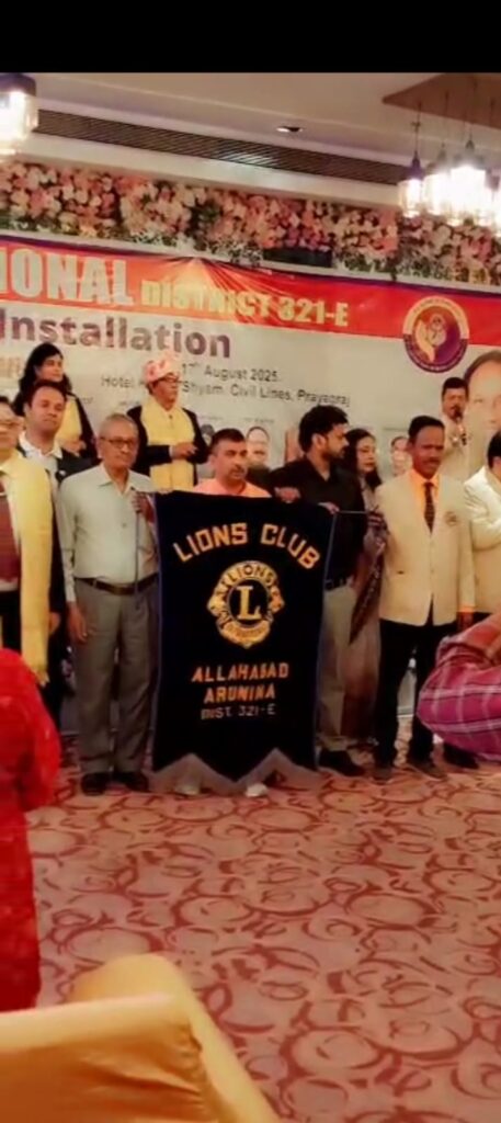 प्रयागराज उक्त समारोह में मुख्य अतिथि एवं अधिष्ठापन अधिकारी *पूर्व अंतराष्ट्रीय अध्यक्ष लायन नरेश अग्रवाल जी* पूर्व मंडला अध्यक्ष* लायन चैतन्य पंड्या अधिष्ठापन चेयरपर्सन और पूर्व मंडला अध्यक्ष B M सिंह,