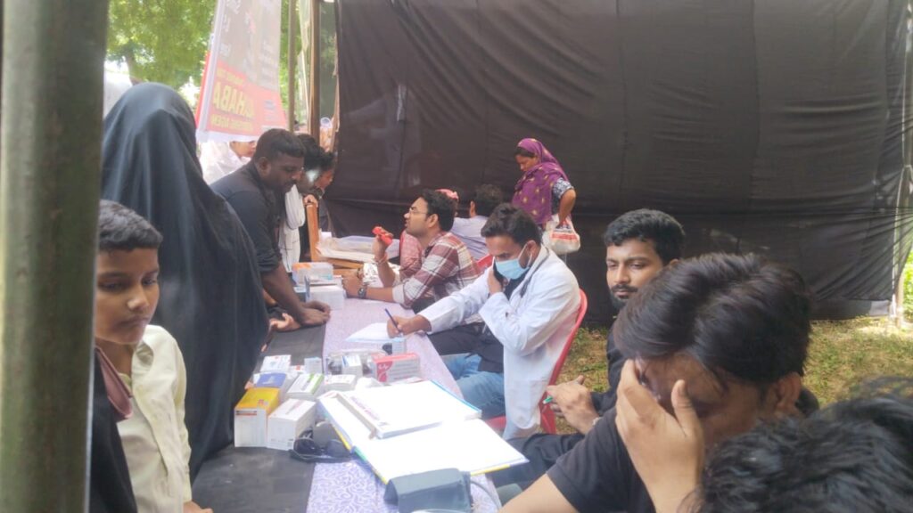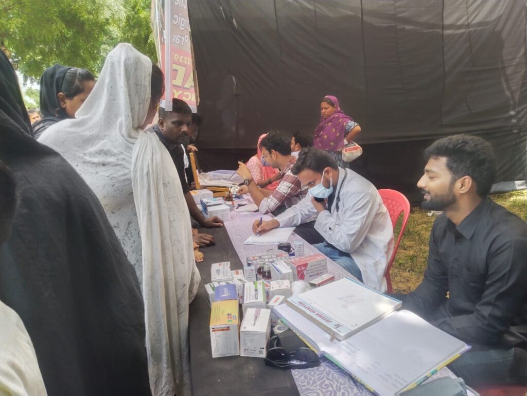 दरियाबाद क़ब्रिस्तान में बहत्तर ताबूत के जुलूस में विधि छात्रों की संस्था के अध्यक्ष सैय्यद अब्बास हुसैन ,शुजा रिज़वी व जीवन हास्पिटल डॉ जमशेद अली के संयुक्त तत्वावधान में निःशुल्क चिकित्सा शिविर लगाया गया जिसमें लगभग 450 पुरुष व महिलाओं का डॉ तारिक़ आलम ,डॉ साहेबे आलम द्वारा मुफ्त चिकित्सा परामर्श के साथ मुफ्त दवाई दी गई।महमूद अब्बास के सनराईज़ सर्जिकल की ओर निशुल्क शूगर ,थायराइड व ब्लड प्रेशर की जांच की गई।शूगर ,बीपी की जांच के उपरान्त मरीजों को दवाई दी। डॉ जमशेद अली , डॉ तारिक़ आलम , डॉ साहेबे आलम ,फराख सुल्तान ,सैय्यद मोहम्मद अस्करी आदि का निःशुल्क चिकित्सा शिविर में योगदान रहा।एम एल सी डॉ मान सिंह यादव ,सैय्यद इफ्तेखार हुसैन ,वज़ीर खान ,मशहद अली खां ,शुजा औन ज़ैदी ,जौन ज़ैदी ,अरशद ज़ैदी ,हश्शाम अंसारी सुफियान ,खुर्रम आदि ने चिकित्सा सुविधा उपलब्ध कराने वाली टीम और एक सोच संस्था के अब्बास हुसैन के प्रयासों की सराहना की।