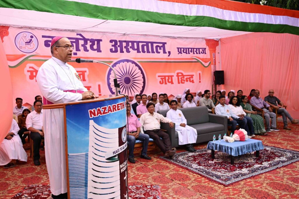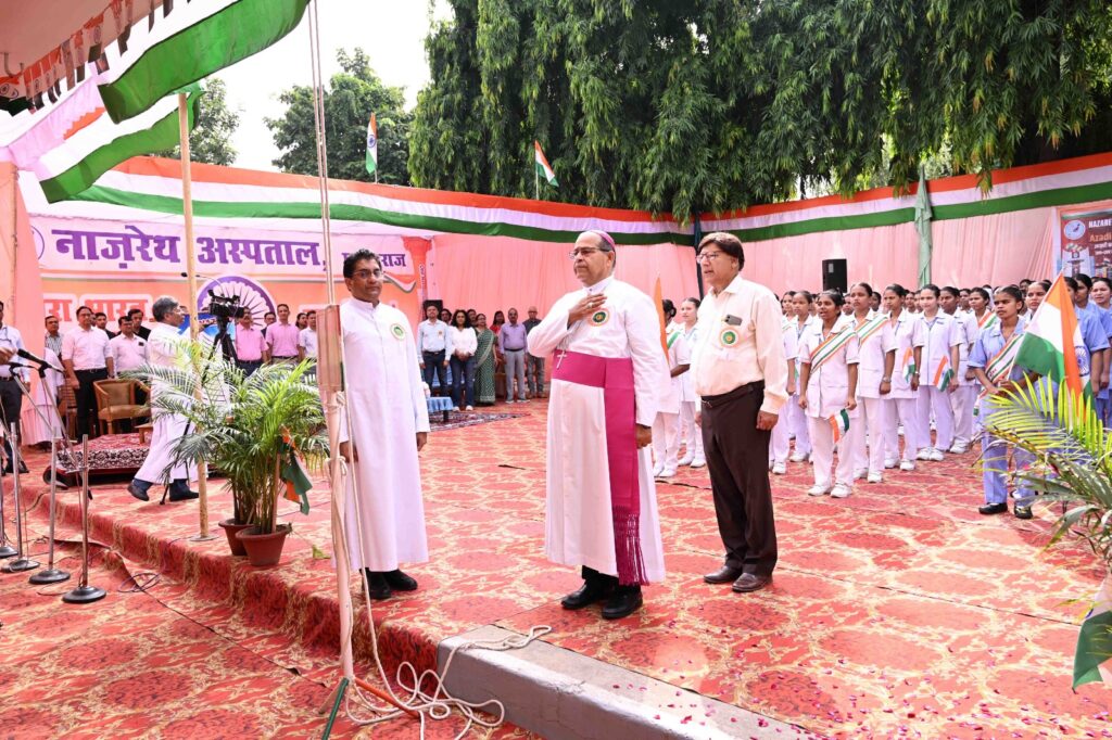 प्रयागराज नाज़रेथ अस्पताल ने अपने परिसर में देशभक्ति के जोश के साथ 79वां स्वतंत्रता दिवस मनाया। इस कार्यक्रम में इलाहाबाद के बिशप, परम पूज्य लुई मस्कारेन्हास मुख्य अतिथि के रूप में उपस्थित थे। मुख्य अतिथि दुबई से आए श्री जॉन बैपटिस्ट पेस और श्रीमती रेशमा कटिन्हा थे। मुख्य अतिथि ने नवनिर्मित एक्स-रे विभाग का उद्घाटन और आशीर्वाद भी दिया, जिसे नई एक्स-रे मशीनों से उन्नत किया गया है।