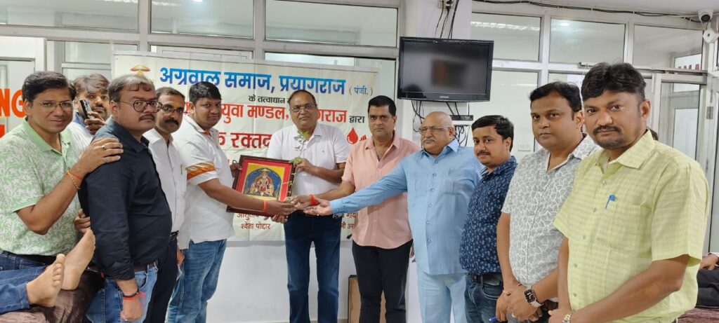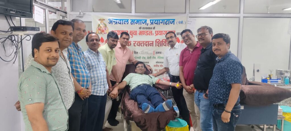प्रयागराज, अग्रवाल समाज के युवा मंडल द्वारा आयोजित मासिक रक्तदान शिविर का आयोजन ए.एम.ए. ब्लड बैंक, बेली रोड, प्रयागराज में किया गया। इस अवसर पर बड़ी संख्या में समाज के बंधुओं ने सहभागिता कर मानवता की मिसाल पेश की। इस शिविर में 5 रक्तदाताओं – नवीन अग्रवाल, मनीष अग्रवाल, सौरभ अग्रवाल, रजत अग्रवाल और तुषार गुप्ता ने विशेष योगदान दिया। अग्रवाल युवा मंडल की सक्रिय भूमिका इस शिविर में विशेष रूप से सराही गई।