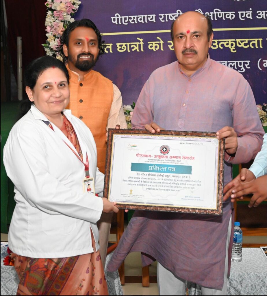 पीएसवाय राष्ट्रीय शैक्षणिक एवं अनुसंधान परिषद द्वारा आयोजित राष्ट्रीय उत्कृष्टता समारोह का भव्य आयोजन पंडित लज्जाशंकर उच्चतर.मा. मॉडल स्कूल जबलपुर में हुआ। कार्यक्रम में मुख्य अतिथि विधायक अशोक रोहाणी, परिषद संचालक डॉ. एस.के. मिश्रा तथा विशिष्ट अतिथि श्री चंद्रशेखर पटेल मौजूद रहे।