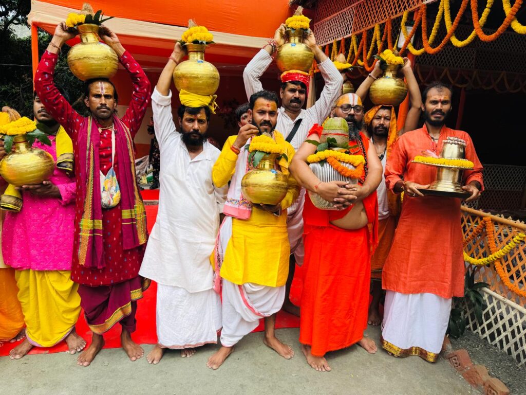 परशुराम कुंड, लोहित। परशुराम कुंड में वरुण पूजन कर भव्य कलश यात्रा के साथ सात दिवसीय रुद्र महायज्ञ एवं माँ राज राजेश्वरी महा आराधना महायज्ञ की सोमवार को शुरुआत हुई। गोवर्धन मठ पुरी पीठाधीश्वर जगदगुरु शंकराचार्य स्वामी अधोक्षजानंद देवतीर्थ के सानिध्य में निकली इस शोभायात्रा में राज्य के उपमुख्यमंत्री चौना मीन, विधायक गण, विभिन्न निकायों के अध्यक्ष, वरिष्ठ अधिकारी, साधु संत, विद्वान आचार्य एवं हजारों की संख्या में श्रद्धालु शामिल थे। कलश यात्रा के दौरान हर हर महादेव के जय घोष से संपूर्ण वन क्षेत्र गूंजायमान हो रहा था।जनजातीय स्त्री एवं पुरुष पारंपरिक वेशभूषा में शामिल हुए। कलश यात्रा परशुराम कुंड मठ स्थित यज्ञशाला में समाप्त हुई।