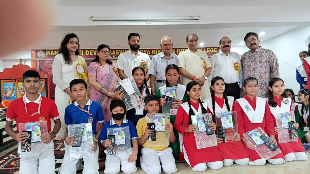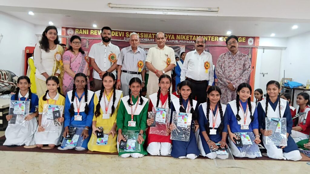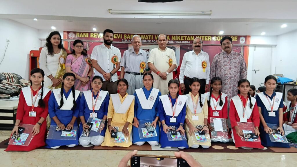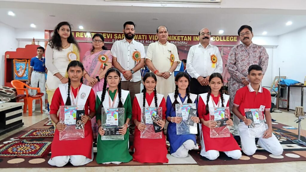 प्रयागराज l रानी रेवती देवी सरस्वती विद्या निकेतन इंटर कॉलेज राजापुर, प्रयागराज में ऋषि लाल सामाजिक उत्थान संस्थान ने प्रधानाचार्य बांके बिहारी पाण्डेय के संयोजन में सांस्कृतिक कार्यक्रमों में उत्कृष्ट प्रदर्शन करने वाले 45 छात्र छात्राओं को आकर्षक उपहार देकर सम्मानित किया l