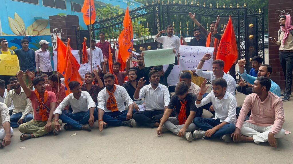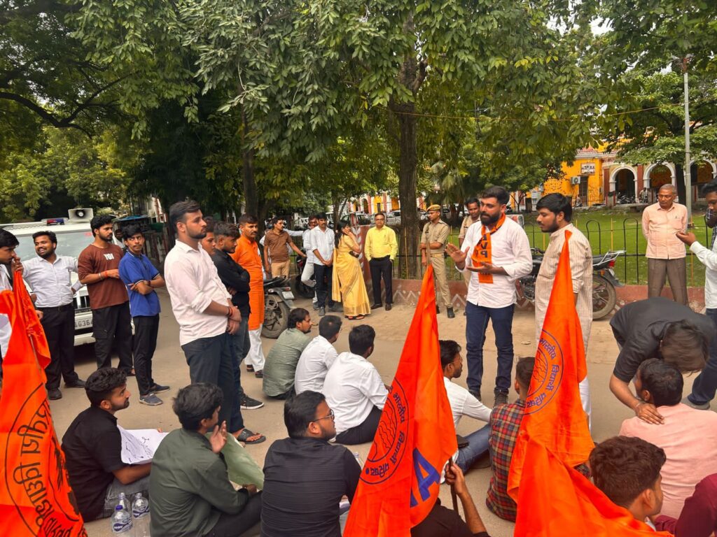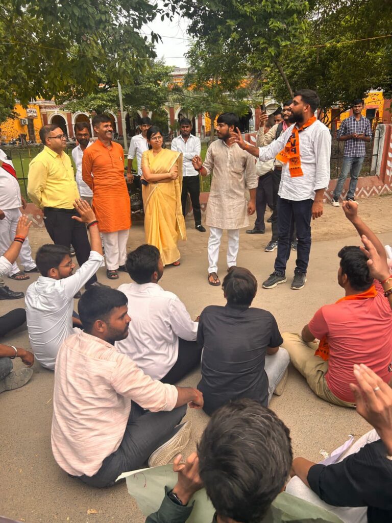 रामस्वरूप विश्वविद्यालय में विद्यार्थी परिषद के शांतिपूर्ण आंदोलन पर क्रूरता के खिलाफ गरजे छात्र