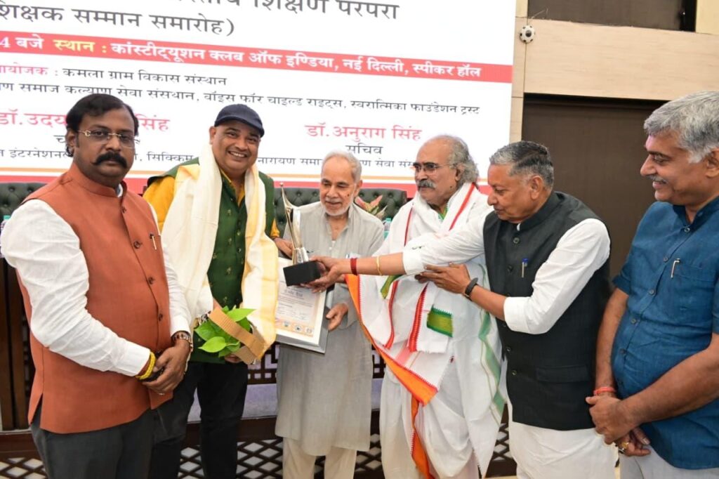 शिक्षक दिवस के अवसर पर कांस्टीट्यूशनल क्लब ऑफ़ इंडिया नई दिल्ली में भाषाई लोकतंत्र एवं भारतीय शिक्षण परंपरा पर संवाद किया गया तथा शिक्षकों का सम्मान समारोह आयोजित हुआ जिसमें कवि,लेखक एवं सहायक आचार्य विधि व,इलाहाबाद डिग्री कॉलेज (इलाहाबाद विश्वविद्यालय) डॉ श्लेष गौतम को समारोह अध्यक्ष पद्मभूषण राम बहादुर राय तथा मुख्य अतिथि पद्मश्री अशोक भगत एवं विशिष्ट अतिथि कालीचरण सिंह सांसद (झारखंड),देश के सुप्रसिद्ध एम्स के चिकित्सक प्रोफेसर संजय राय,तथा शिक्षा एवं संस्कृति के क्षेत्र की सुपरिचित विभूति डॉ उदय प्रताप सिंह के हाथों शिक्षा एवं शैक्षणिक संदर्भों हेतु सम्मानित किया गया।