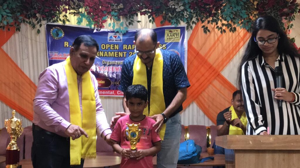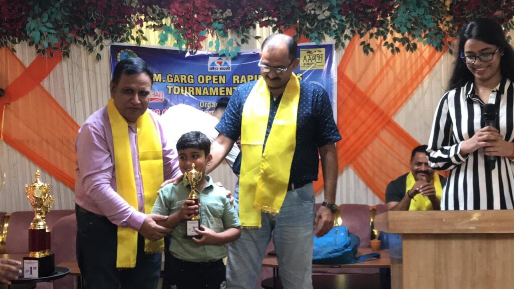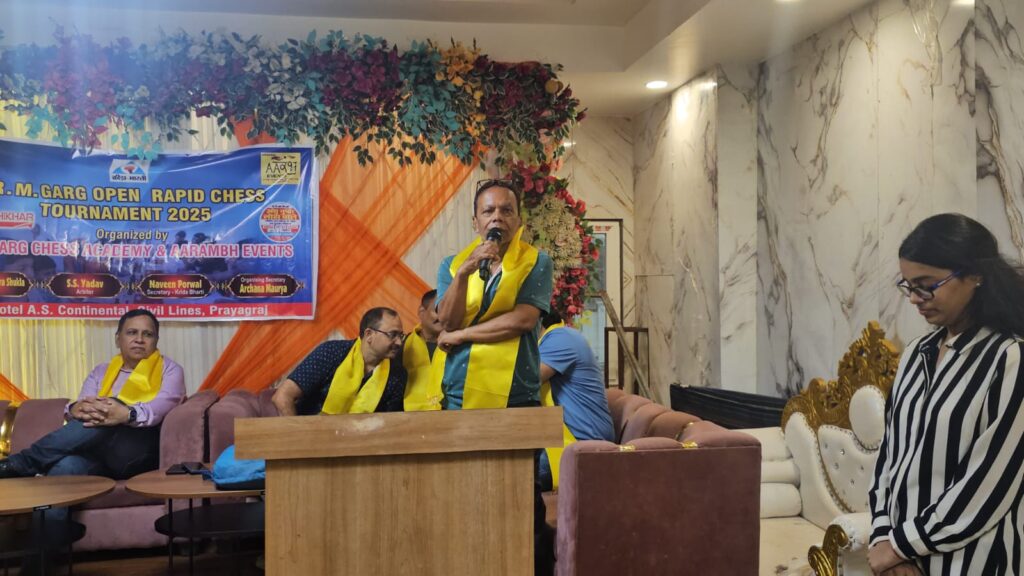 प्रयागराज आर एम जी शतरंज अकादमी एवं आरंभ इवेंट्स के द्वारा 27 वा ओपन शतरंज प्रतियोगिता का आयोजन सिविल लाइंस में किया गया।जिसका उद्घाटन मुख्य अतिथि डॉ राज गुलाटी और प्रयागराज कीड़ा भारती के सेक्रेटरी नवीन पोरवाल के द्वारा मोहरों को चलकर किया गया आयु वर्ग 7 में