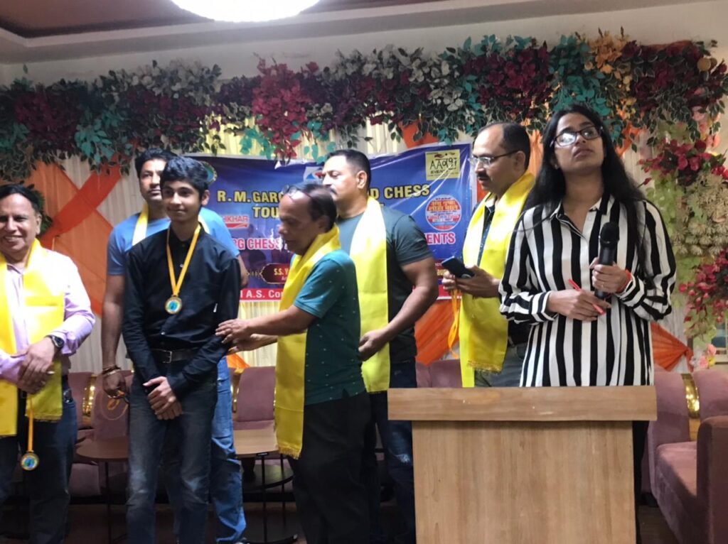 आईएमजी ओपन शतरंज प्रतियोगिता के समापन में मुख्य अतिथि इंटरनेशनल रेडियो सुर संगम के डायरेक्टर डॉ राज गुलाटी,प्रियांक गुप्ता लोहा वाले , क्रीड़ा भारती प्रयागराज के सचिव नवीन पोरवाल , उजाला शिखर के संपादक आलोक मालवीय के द्वारा खिलाड़ियों को पुरस्कार वितरित किया गया एवं खिलाड़ियों को उज्जवल भविष्य की शुभकामनाएं दी गई पुरस्कार वितरण समारोह का संचालन उन्नति सक्सेना ने किया। उपस्थित अभिवाहकों ने इस तरह के कार्यक्रम को आगे भी जारी रखने का आग्रह किया है।