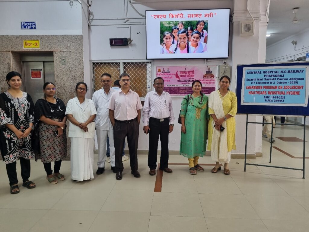 केंद्रीय चिकित्सालय, उत्तर मध्य रेलवे, प्रयागराज में स्वस्थ नारी स्वस्थ परिवार अभियान के अंतर्गत 18 सितम्बर 2025 को चिकित्सा निदेशक डॉ. संजीव कुमार हन्डू तथा मुख्य चिकित्सा अधीक्षक डॉ. सुरेन्द्र नाथ की अध्यक्षता में किशोर स्वास्थ्य देखभाल एवं मासिक धर्म स्वच्छता पर जागरूकता कार्यक्रम का आयोजन किया गया I