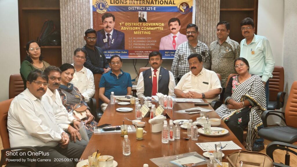 लायंस क्लब इंटरनेशनल के डिस्ट्रिक्ट 321 ई के जोन चेयरपर्सन एमजेएफ लायन अनूप सिंह की अध्यक्षता में दिनांक 17 सितंबर 2025 “डिस्ट्रिक्ट गवर्नर एडवाइजरी कमेटी मीटिंग” का आयोजन शहर की रामा कॉन्टिनेंटल होटल प्रयागराज में आयोजित किया गया। क्लब के जनसंपर्क अधिकारी लालू मित्तल ने जानकारी दी कि डिस्ट्रिक्ट के चार प्रतिष्ठित क्लब सिटी, ग्रेटर, गौरव, एलिट ने अपनी सहभागिता की। जिनका स्वागत एवं अभिनंदन लायन अनूप सिंह द्वारा किया गया।*