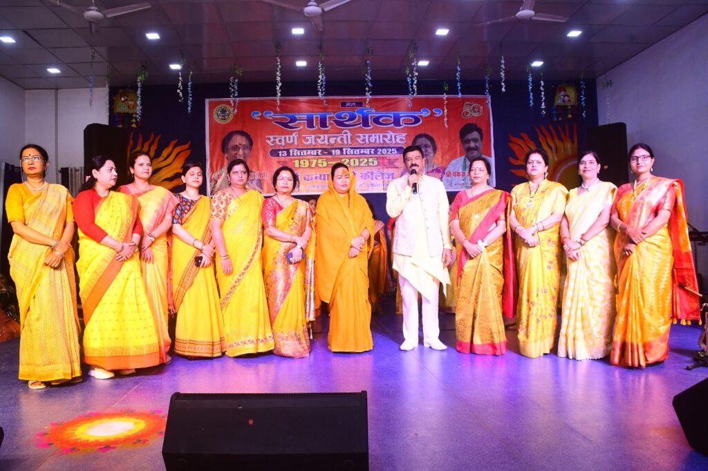 कार्यक्रम का संचालन चीफ प्राक्टर डॉ० रंजना त्रिपाठी ने तथा धन्यवाद ज्ञापन प्राचार्या प्रो० अर्चना पाठक ने किया। आज के कार्यक्रम का मुख्य आकर्षण का केन्द्र पुराछात्राओं के द्वारा विविध सांस्कृतिक कार्यक्रमों की प्रस्तुति रही। कॉलेज की चीफ प्रॉक्टर डॉ० रंजना त्रिपाठी ने अपने गायन से सबका मन मोह लिया। जिसमें विशेष रूप से उपप्राचार्या प्रो० इभा सिरोठिया द्वारा ‘श्रीराम चन्द्र कृपालु भजु मन’ पर कथक नृत्य, स्मृति गुप्ता द्वारा शिवाष्टकम् पर नृत्य, सरगम मिश्रा द्वारा मधुराष्टकम् पर नृत्य, साक्षी, रत्ना एवं सोनम द्वारा भांगड़ा नृत्य, रूपाली शर्मा द्वारा लोकगीत, शिखा, नेहा, वर्षा द्वारा ‘केसरिया बालम’ गीत एवं वर्षा मिश्रा द्वारा कथक नृत्यों की श्रृंखला रही। बताते चलें कि महाविद्यालय में प्रतिदिन की भाँति आज भी प्रातःकाल यज्ञ का आयोजन हुआ। यह यज्ञ दिनांक 12 सितम्बर से प्रतिदिन महाविद्यालय परिसर में स्वर्ण जयंती समारोह के उपलक्ष्य में चल रहा है।
