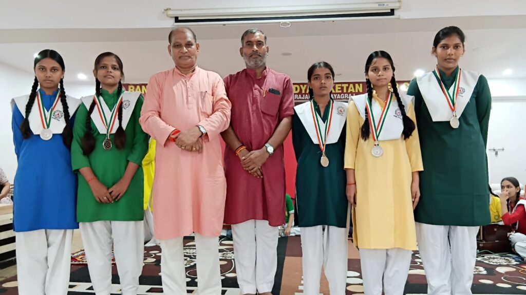 प्रयागराज विद्या भारती से संबद्ध काशी प्रांत के रानी रेवती देवी सरस्वती विद्या निकेतन इंटर कॉलेज राजापुर प्रयागराज के खिलाड़ी भैया बहनों ने विद्यालय के प्रधानाचार्य बांके बिहारी पाण्डेय के कुशल मार्गदर्शन में सरस्वती विद्या मंदिर सेक्टर क्यु अलीगंज लखनऊ में विद्या भारती द्वारा आयोजित 36वीं क्षेत्रीय बास्केटबॉल एवं कराटे प्रतियोगिता बालक वर्ग के अंडर 14, अंडर 17, एवं अंडर 19 तथा बालिका वर्ग के अंडर 17 तथा कराटे में मोंटी कुमार ने अंडर-19 में विजयी होकर फाइनल में जगह बनाई l खिलाड़ी भैया बहनों की इस अभूतपूर्व सफलता पर प्रधानाचार्य बांके बिहारी पाण्डेय ने वंदना सभा में समस्त खिलाड़ी भैया बहनों को प्रमाण पत्र एवं मेडल देकर सम्मानित करते हुए उनके उज्जवल भविष्य की प्रार्थना करते हुए अखिल भारतीय प्रतियोगिता में स्थान बनाने की कामना की l