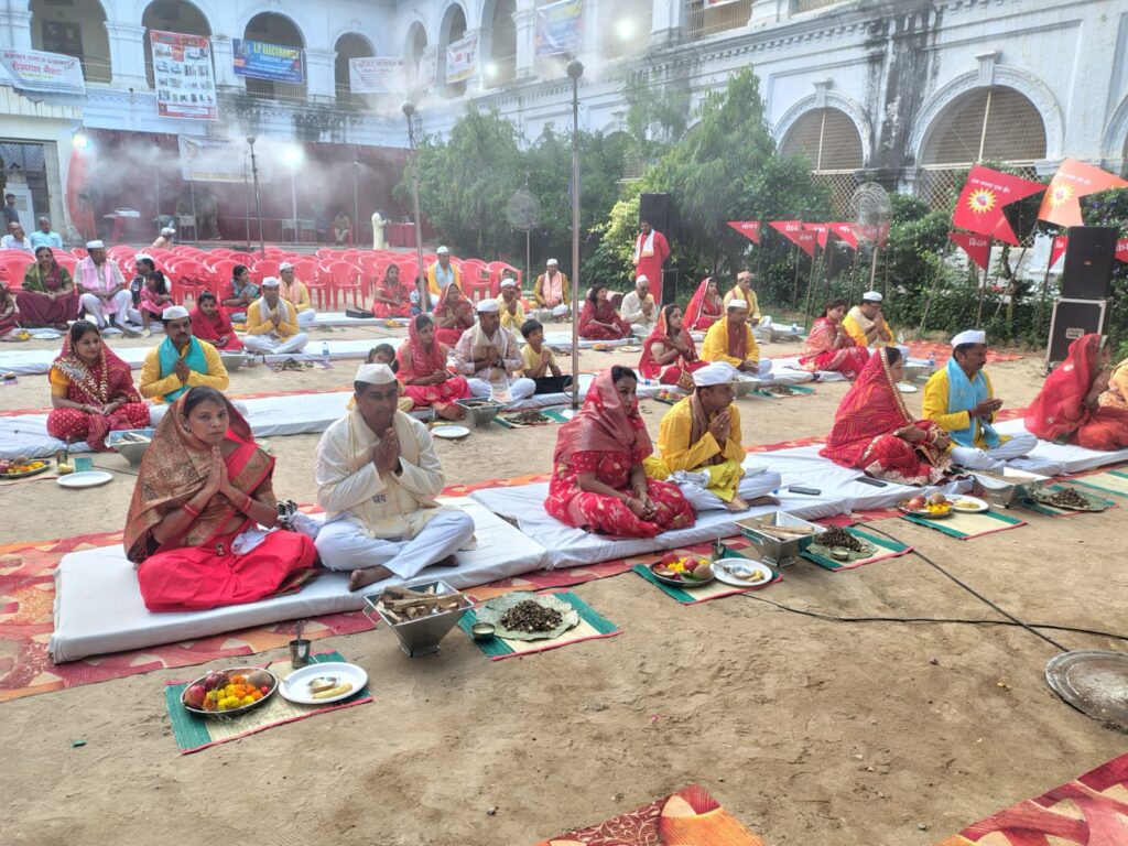 इस विशेष आयोजन में समाज के 19 दंपत्तियों ने अलग-अलग कुण्डों में बैठकर वैदिक मंत्रोच्चारण के बीच विधिविधान से हवन किया। हवन की पवित्र अग्नि और मंत्रों की ध्वनि से संपूर्ण वातावरण आध्यात्मिक ऊर्जा और श्रद्धा से ओत-प्रोत हो उठा। कार्यक्रम का शुभारंभ बटुकों द्वारा स्वस्तिवाचन से हुआ, जिसने पूरे माहौल को और अधिक गरिमामय बना दिया।