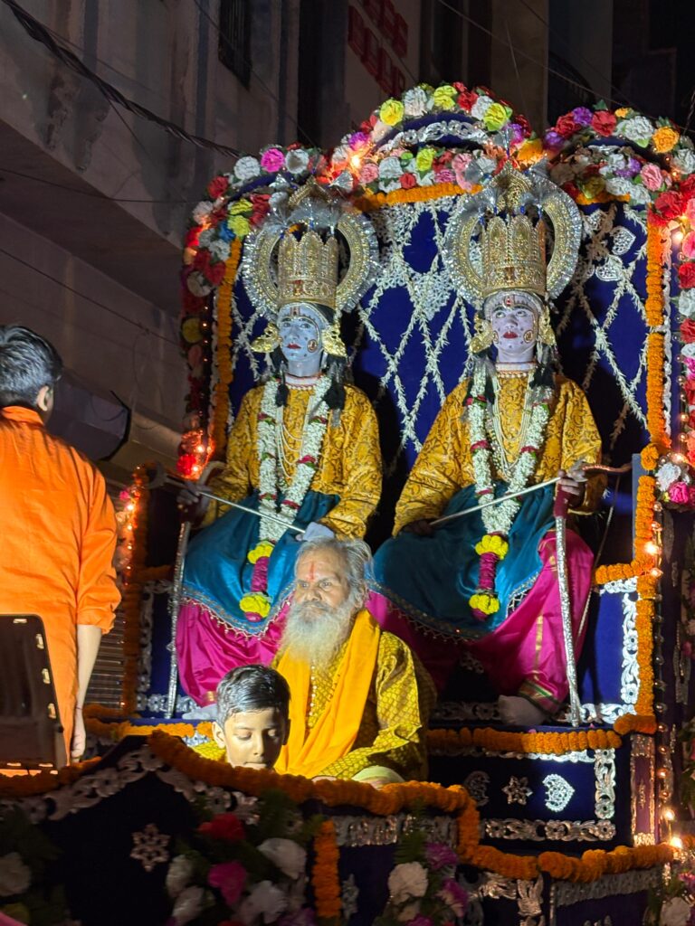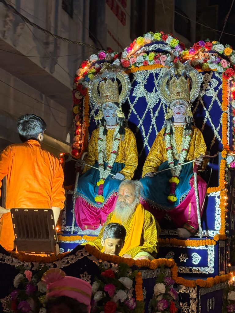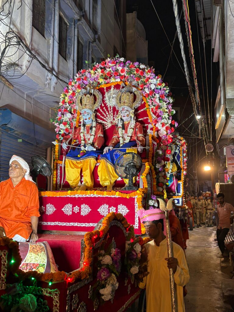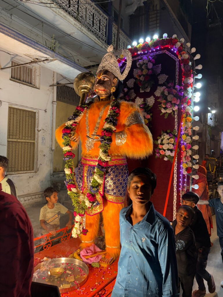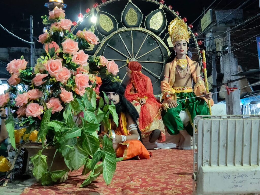आगे आगे हनुमान जी चल रहे थे ढोल ताशा पार्टी डीजे वाले व चौकिया अपने प्रदर्शन से भक्तों को भाव विभोर कर रहे थे। भगवान राम का दरबार विष्णु लोक सीता का स्वयंवर सीता विवाह मां काली राधा कृष्ण जैसी दर्जनों झांकियां निकाली गई भगवान राम और लक्ष्मण का दर्शन करके भक्त भावुक होकर जय सियाराम का जयकारे लगाते हैं और उनके चरणों में फूल अर्पित करते है हाथ जोड़कर नमन करते हैं भक्ति गीत खुश होंगे हनुमान राम राम किए जा सुबह शाम राम राम किए जा राम जी कि निकली सवारी राम जी कि लीला न्यारी हनुमान जी का रूप धारण करे हुए कलाकार ने अपने कला से भक्तों का मन मोह लिया दर्शकों ने ताली बजाकर उनका स्वागत और अभिनंदन किया।
