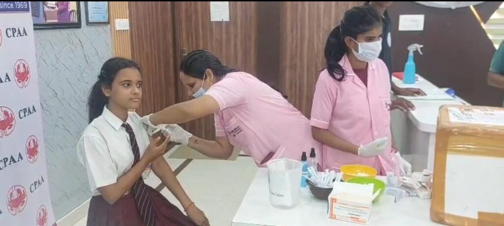 डॉ. प्रीति हॉस्पिटल झुंसी में 20 विद्यालयों की 200 बालिकाओं का निःशुल्क सर्वाइकल कैंसर टीकाकरण