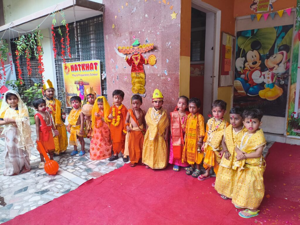 शास्त्री नगर प्रयागराज में स्थित नटखट प्ले स्कूल में विजया दशमी का पर्व बड़े उत्साह से ब्रांच हेड रीना सोनी के नेतृत्व मे मनाया गया। स्कूल के बच्चों को राम चरित मानस का प्रसंग कहानी के रूप में सुनाया गया।, नटखट के बाल कलाकारों ने श्री राम, सीता, लखन, हनुमान, रावण, शबरी, के वेश भूषा मै सुसज्जित होकर रामायण के विविध प्रसंगों का अभिनय किया। अंत में रावण के पुतले का दहन किया।
