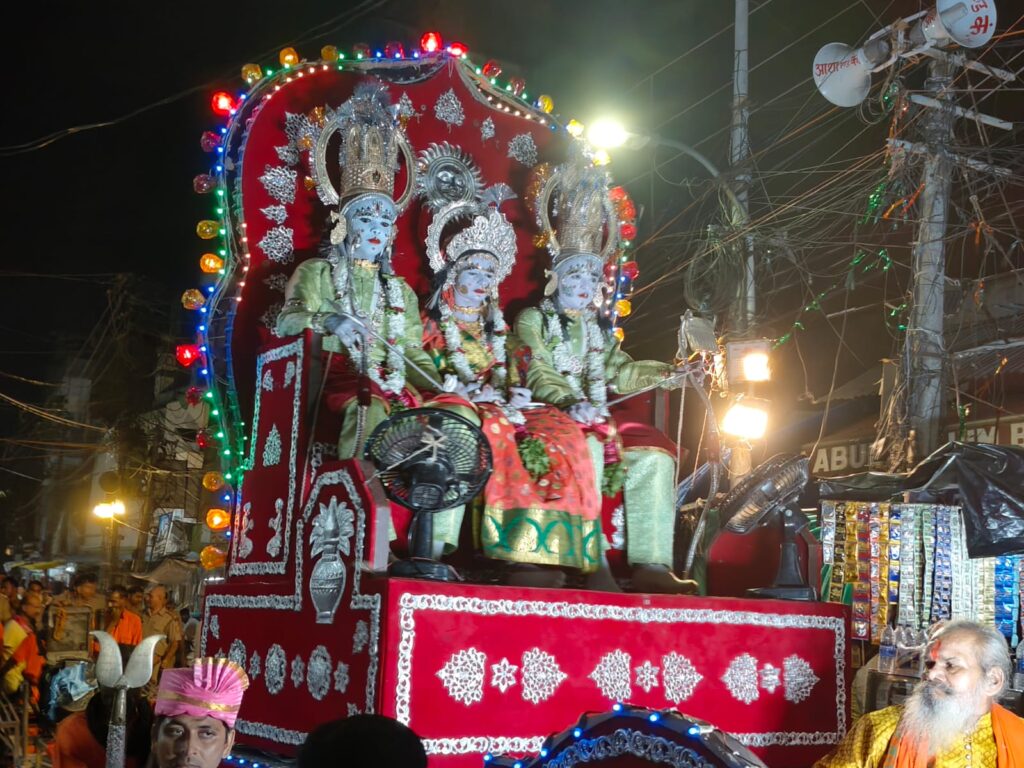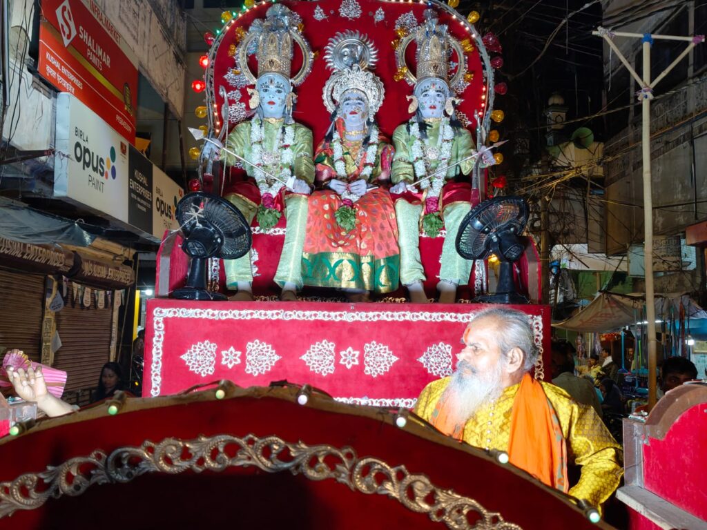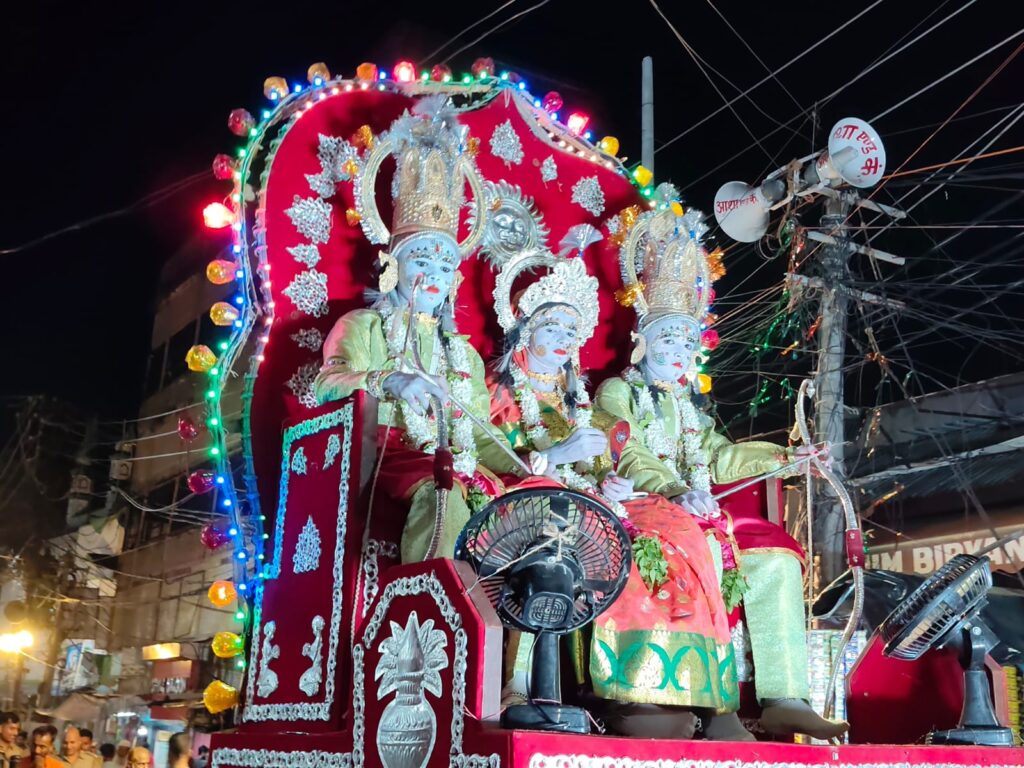 प्रयागराज. हाथी राम पजावा रामलीला कमेटी के द्वारा भगवान राम सीता और लक्ष्मण की चौकी निकाली गई सुंदर सजावट और लाइटिंग किया गया