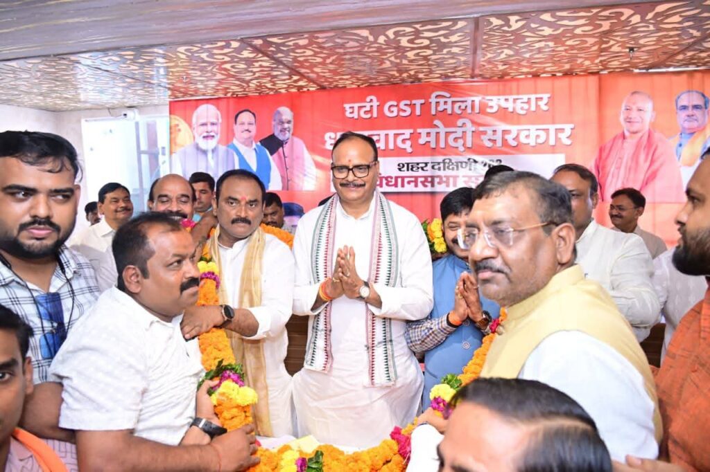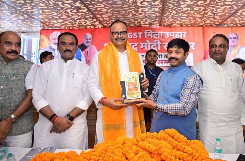 प्रयागराज जीएसटी रिफॉर्म(सुधार) को लेकर भाजपा प्रयागराज महानगर के तत्वाधान में शहर दक्षिणी विधानसभा के रामबाग स्थित होटल सनराइज विज्टा में व्यापारी सम्मेलन का आयोजन किया गया। डॉ श्यामा प्रसाद मुखर्जी व पंडित दीनदयाल उपाध्याय के चित्र के समक्ष दीप प्रज्वलन कर कार्यक्रम की शुरुआत की गई। कार्यक्रम में बतौर मुख्य अतिथि पहुंचे प्रदेश के उपमुख्यमंत्री ब्रजेश पाठक ने जीएसटी सुधार को लेकर उपस्थित व्यापारियों को संबोधित करते हुए कहा कि केंद्र सरकार ने जीएसटी रिफॉर्म कर दुनिया ऐतिहासिक काम किया है। प्रयागराज तो भारत माता का केंद्र है। 67 करोड़ लोगों ने महाकुंभ में स्नान किया और सकुशल वापस गए। यहां के व्यापारियों ने निः शुल्क भोजन कराया। 2014 में जब प्रधानमंत्री मोदी ने सत्ता संभाली तो भारत दुनिया के भ्रष्टाचार वाले देशों में पहचाना जाता था। कांग्रेस भ्रष्टाचार की जननी है। मुंबई हमलों के गुनहगार रहे आतंकवादी कसाब को कांग्रेस ने बिरयानी खिलाई। भाजपा सरकार में आज उत्तर प्रदेश में व्यायारियों पर बुरी नजर डालने वालों का क्या हाल होता है सब जानते हैं। पहले एक एक गाड़ी में दस दस असलहाधारी चलते थे और व्यापारियों से गुंडा टैक्स वसूलते थे। डिप्टी सीएम में सपा पर ह बोलते हुए कहा कि “समाजवादी पार्टी का नारा है खाली प्लाट हमारा है”। प्रदेश में अब कानून का राज है जिसने भी कानून तोड़ा उसके खिलाफ बिना भेद भाव के कड़ी कार्रवाई की गई है। पीएम मोदी ने दुनिया को भारत की ताकत बताई, 25 करोड़ लोगों को गरीबी रेखा से बाहर निकाला, पूरा देश मानता है कि मोदी उनके परिवार के सदस्य हैं। कोविड में पीएम मोदी ने दुनिया को भारत के आत्मनिर्भरता की तस्वीर दिखाई। पोलियो का टीका विदेश से भारत आने में चार दशक लग गए। कोविड काल में भारत ने दुनिया के 150 अधिक राष्ट्रों को निः शुल्क टीका भेजा। प्रधानमंत्री नरेंद्र मोदी ने महंगाई पर प्रभावी नियंत्रण के लिए जीएसटी सुधार किया। दुनिया के सर्वाधिक लोकप्रिय नेता हैं पीएम मोदी। जीएसटी सुधार से आज ढेरों दैनिक उपयोग की वस्तुओं पर जीरो जीएसटी है। जीवन रक्षक दवाओं पर जीएसटी कम हुई है। भारत तेजी के साथ आगे बढ़ने वाली अर्थ व्यवस्था है। 2014 में 11 वें नंबर पर थे आज चौथे पर हैं। जीएसटी सुधार के बाद चार गुना व्यापार हुआ है। उत्तर प्रदेश नंबर एक अर्थव्यवस्था बनने की ओर बढ़ रहा है। व्यापारी विपक्ष के बहकावे में न आएं। सपा कांग्रेस के लोग बहरूपिए हैं। इन्होंने उत्तर प्रदेश को लूटने का काम किया है। उत्तर प्रदेश में आज बेटियां रात 12 बजे भी निडर होकर निकल सकती हैं। महात्मा गांधी के नाम पर जिन लोगों ने वोट लिया उन्होंने स्वदेशी को कभी प्रमोट नहीं किया। आज पीलीभीत की बांसुरी, मुरादाबाद का प