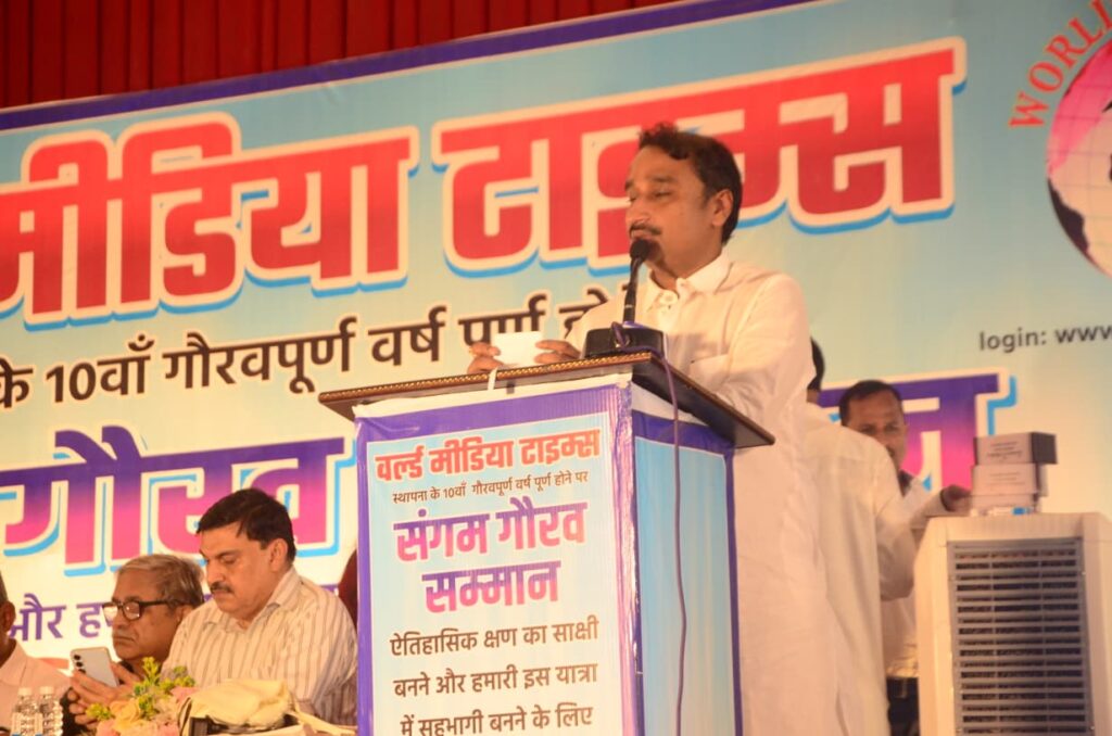 वर्ल्ड मीडिया टाइम्स के संगम सम्मान समारोह में विधायक हर्षवर्धन बाजपेई और दीपक पटेल रहे मुख्य अतिथि