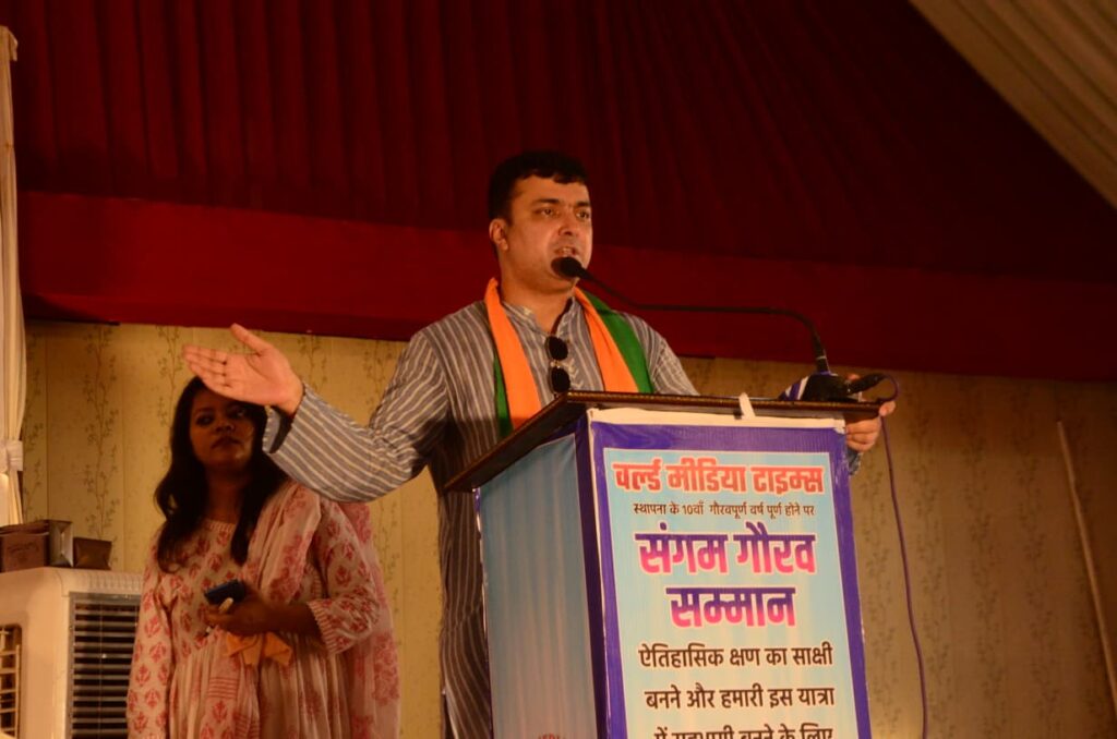 वर्ल्ड मीडिया टाइम्स के संगम सम्मान समारोह में विधायक हर्षवर्धन बाजपेई और दीपक पटेल रहे मुख्य अतिथि