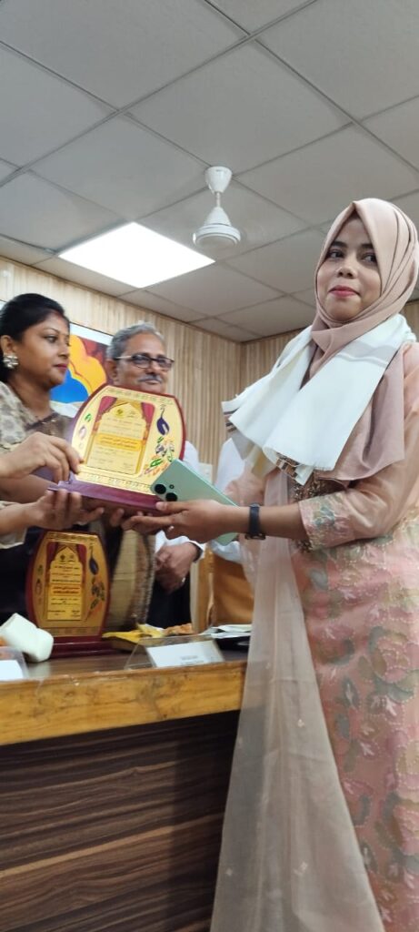 अलीना खान को हिन्दुस्तानी एकेडेमी मे किया गया सम्मानित