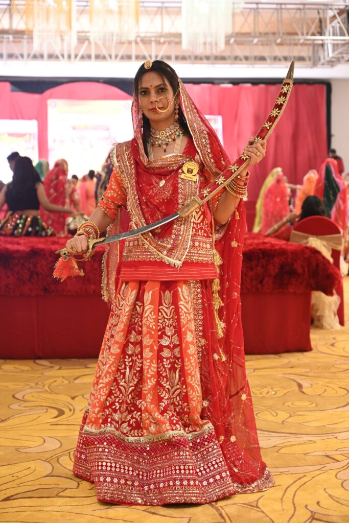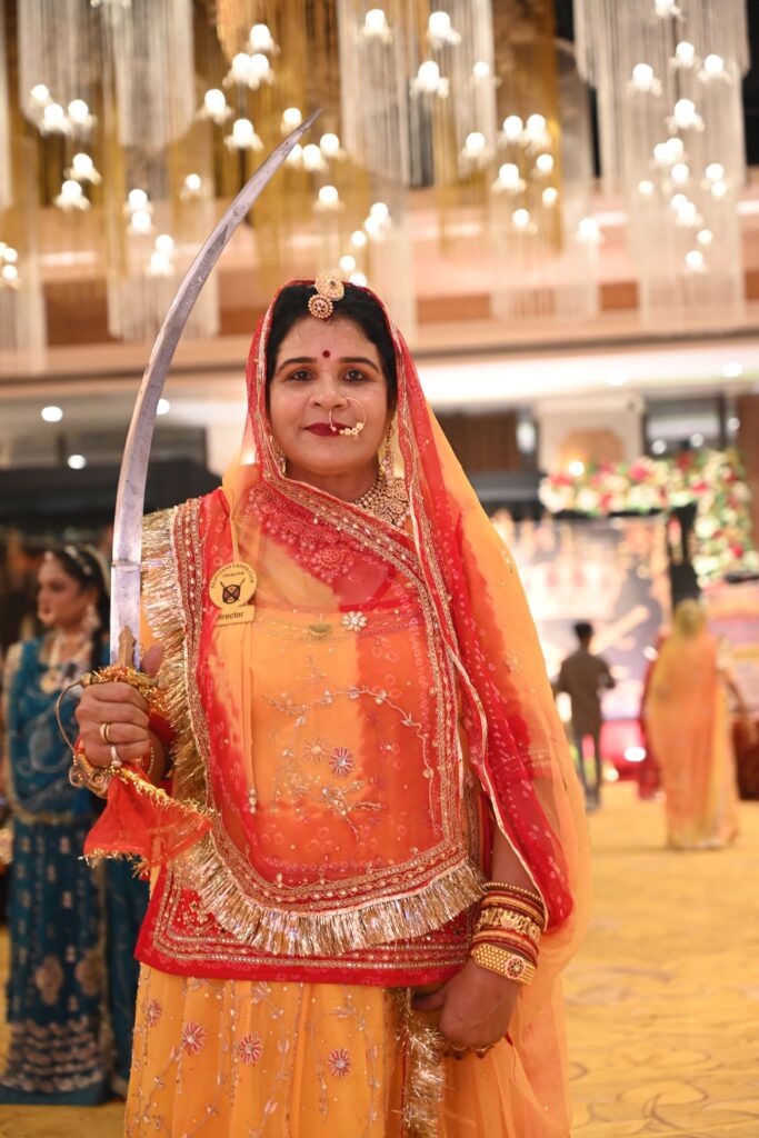 महिलाओं ने पारंपरिक राजस्थानी परिधानों में सज-धजकर कार्यक्रम में भाग लिया। मंच पर तलवारों के साथ शौर्य और संस्कृति की प्रतीकात्मक झलक दिखाई दी। कार्यक्रम में प्रस्तुत घूमर नृत्य और अन्य पारंपरिक प्रस्तुतियों ने वातावरण को उत्साह और उमंग से भर दिया।