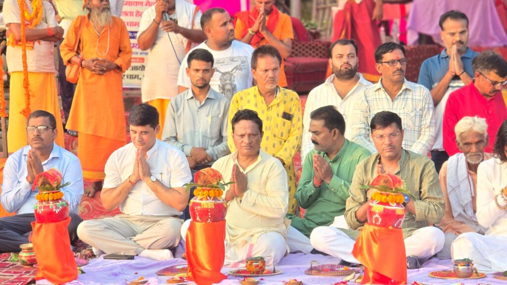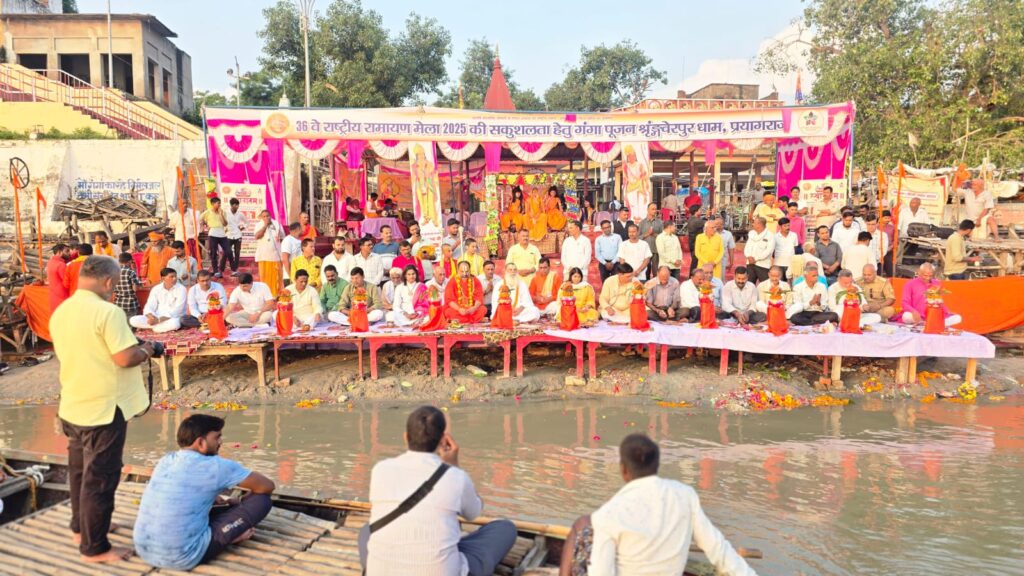 36 वें राष्ट्रीय रामायण मेला की सकुशलता हेतु किया गया माँ गंगा की महाआरती व पूजन