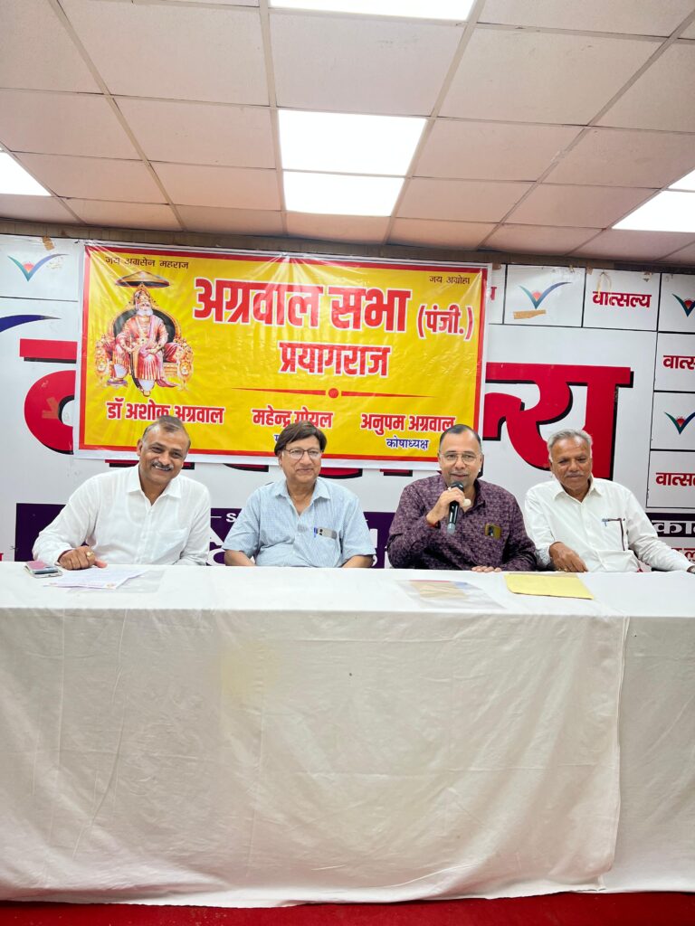 वात्सल्य सभागार में मौजूद आप सभी पत्र एवं टी वी मीडिया का स्वागत करते हैं और आपके समक्ष बड़े हर्ष और उत्साह के साथ हम “अग्रवाल सभा” नाम से पंजीकृत पता: 15/11, एम जी मार्ग, सिविल लाइन्स, प्रयागराज स्थित न्यास की विधिवत घोषणा करते हैं। इस संस्था के गठन में प्रयागराज के 20 प्रतिष्ठित अग्रवालों के द्वारा महत्वपूर्ण योगदान दिया गया है। इस संस्था के नियमों और उद्देश्यों, कर्तव्य, दायित्व आदि का लेखन एवं संकलन मुरारी लाल अग्रवाल (पूर्व मेयर) के द्वारा किया गया है। संस्था की परिकल्पना 2 अक्टूबर 2025 को दशहरे के दिन की गई और इसका पंजीयन 9 अक्टूबर 2025 को किया गया।