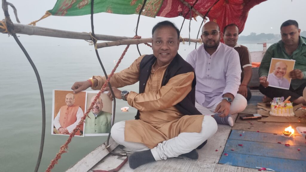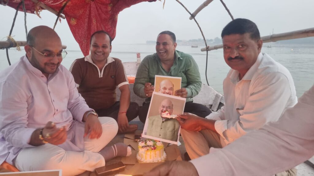 संगम की लहरों पर बीजेपी कार्यकर्ताओं ने केंद्रीय गृह मंत्री अमित शाह का जन्मदिन मनाया
