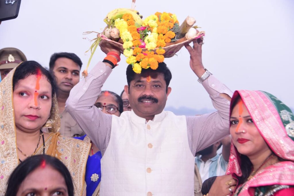 मंत्री नन्दी और पूर्व महापौर ने किया छठ पूजन,डूबते सूर्य को दिया अर्घ्य,छठ की दी शुभकामनाएं
